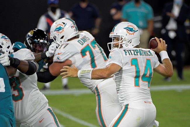 Fitzpatrick completed his first 12 passes — a career high — as Miami scored touchdowns on its first three drives for the first time since 2011. He ended the night celebrating another victory over the Jaguars (1-2).