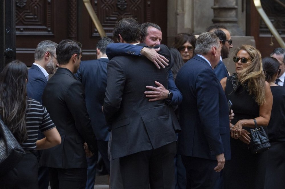 People embrace each other following a funeral of Julia Hyman, associate at Rudin Management Company, one of the victims of Monday's deadly shooting, Wednesday, July 30, 2025, in New York. (AP Photo/Yuki Iwamura)
