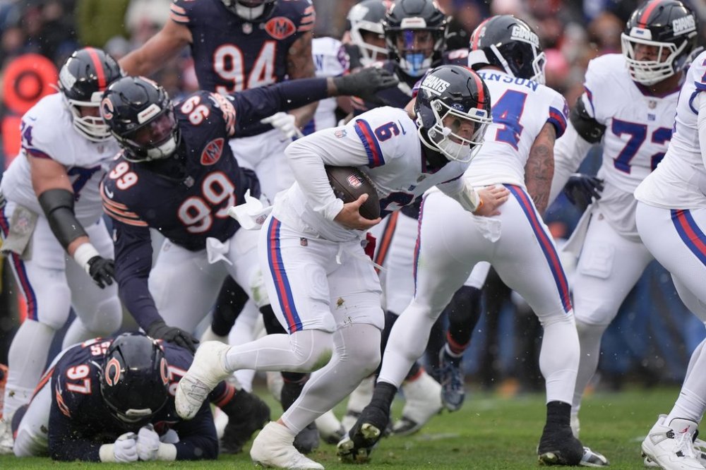 After the ensuing Bears drive ended in a field goal, Dart was on the field for the final two plays of the third. He threw a 3-yard pass to Wan’Dale Robinson that was wiped out by a penalty, and then handed the ball off to Tyrone Tracy for a 4-yard gain.