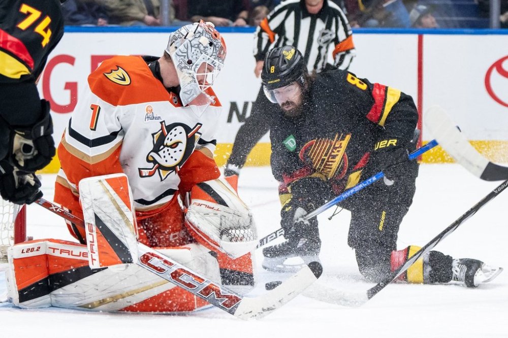 VANCOUVER – The Vancouver Canucks looked flat early but rookie defenceman Elias Pettersson provided a spark with his first NHL goal, igniting a five-goal first-period outburst in a 6-2 win over the Anaheim Ducks Saturday afternoon.