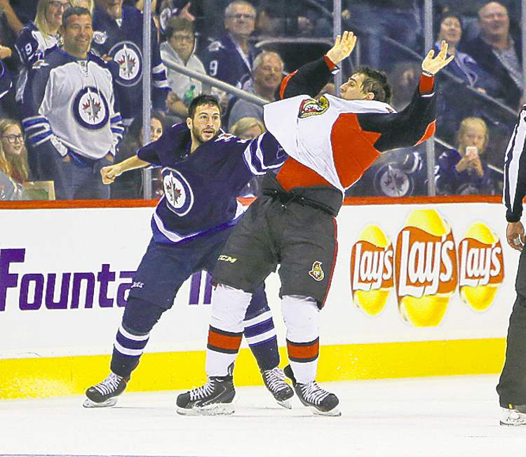 A new rule levies an extra two-minute unsportsmanlike penalty on top of five-minute fighting majors on fighters who take their helmets off voluntarily and Peluso — who missed the final 27 games of the 2012-13 season when he broke his hand in a fight March 2 at the MTS Centre — said that’s fine by him.