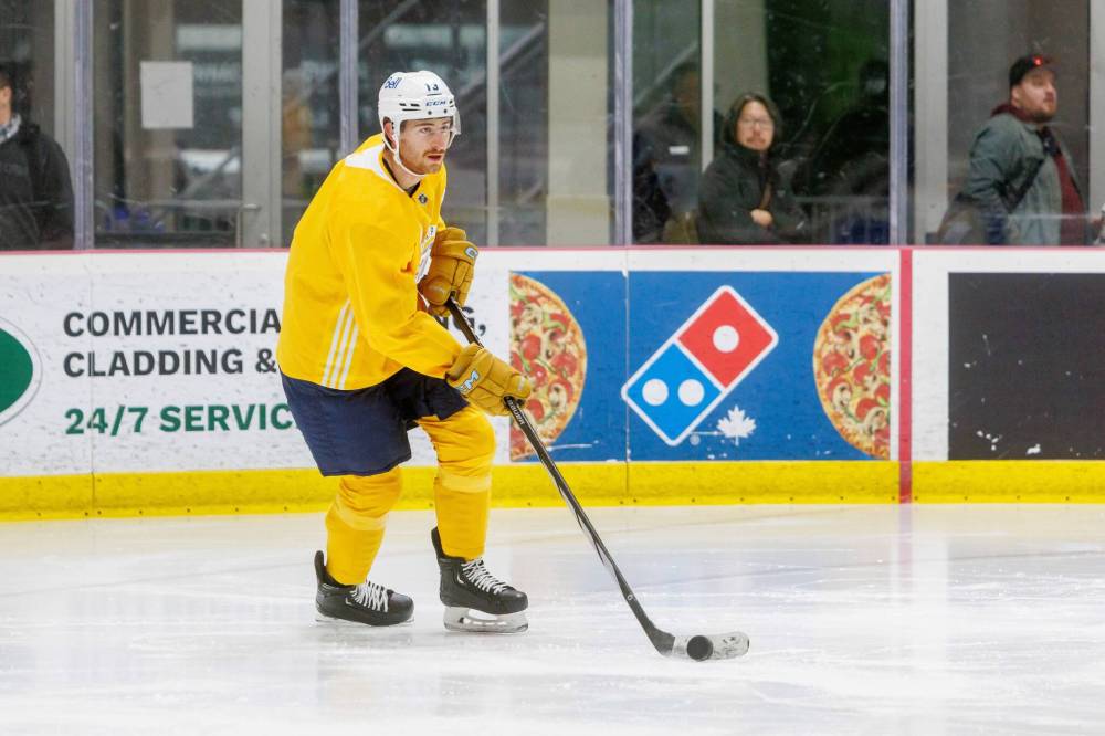 Vilardi wore a yellow non-contact jersey, although he appeared to be skating at full speed.