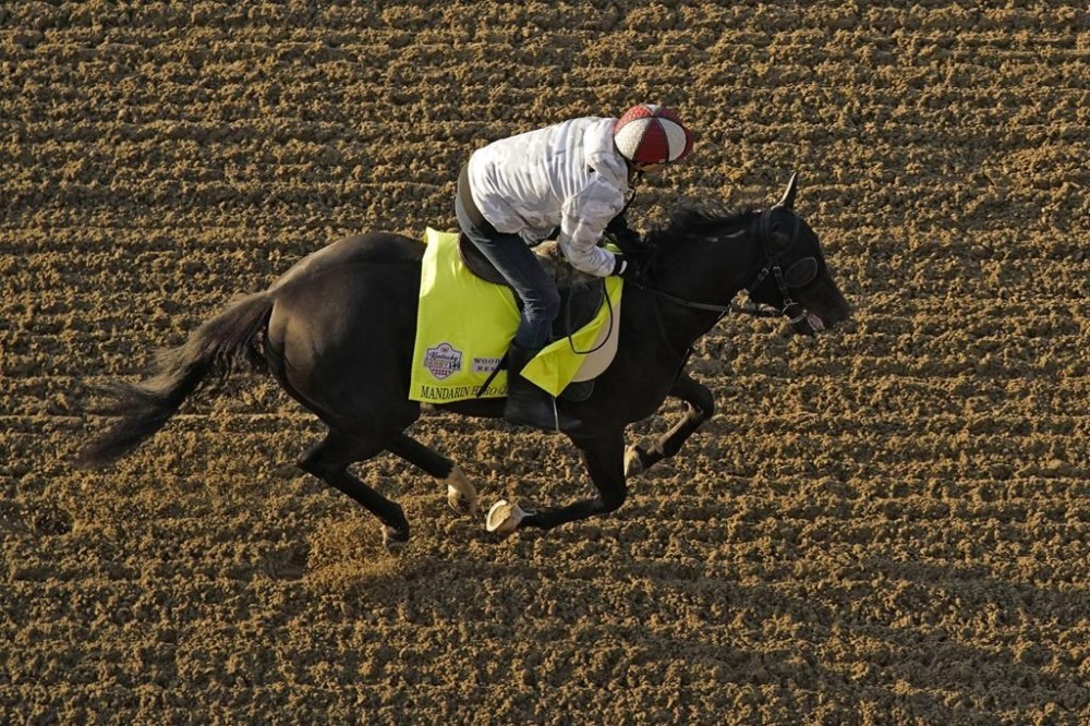 Kentucky Derby alternate Mandarin Hero works out at Churchill Downs Thursday, May 4, 2023, in Louisville, Ky. The 149th running of the Kentucky Derby is scheduled for Saturday, May 6. (AP Photo/Charlie Riedel)