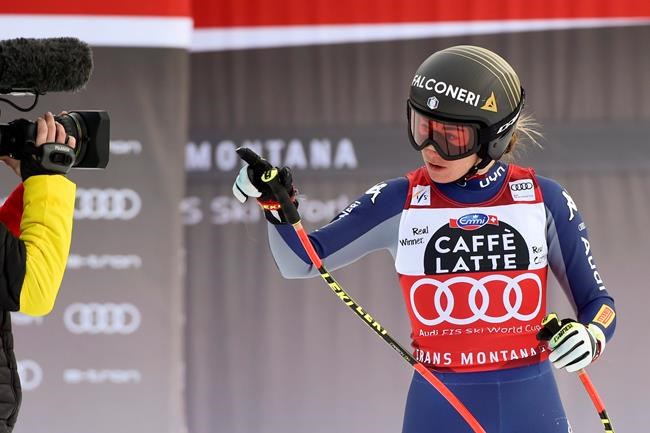 A super-G race is scheduled Sunday at Crans-Montana. Goggia’s next scheduled start in downhill is next Saturday at Garmisch-Partenkirchen, Germany.