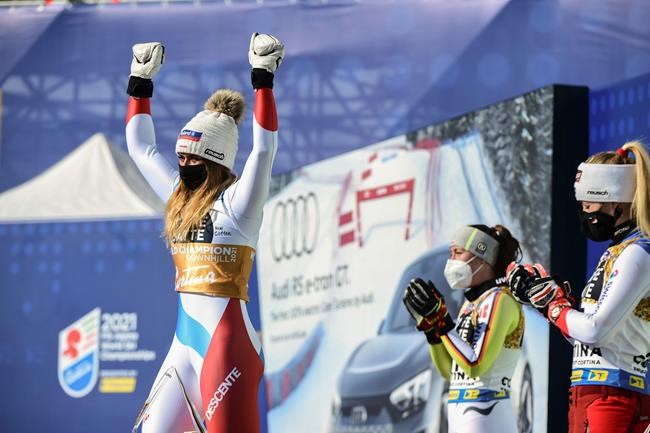 CORTINA D’AMPEZZO, Italy – Corinne Suter ended Switzerland’s 32-year wait for a women’s downhill world title on Saturday, winning her fourth straight medal at a major championship but the first gold.