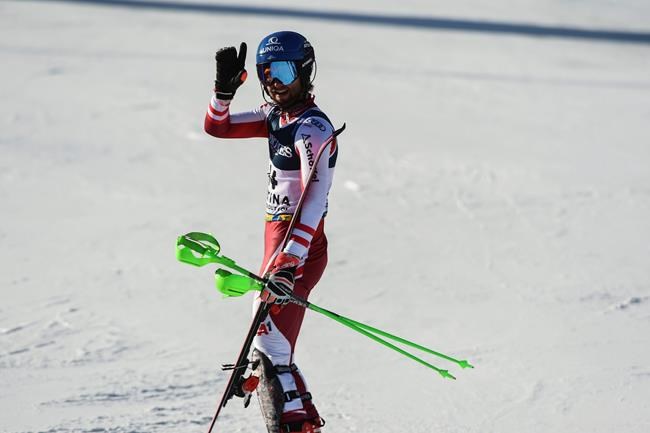 He will defend a lead of 0.08 seconds over defending champion Alexis Pinturault in the slalom portion.