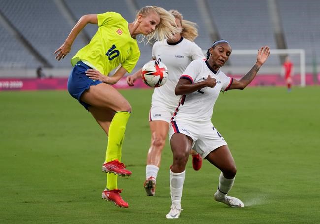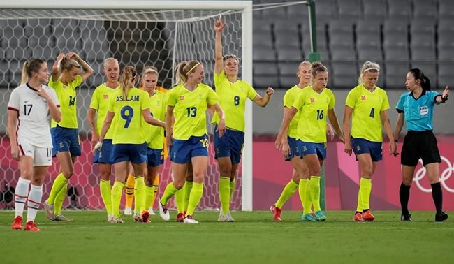 The Swedes dominated the U.S. in the opening half at Tokyo Stadium, going ahead on Stina Blackstenius’ header into the far corner off a cross from Sofia Jakobsson. The United States looked stale, with its best chance coming on a Rose Lavelle shot that hit the post.