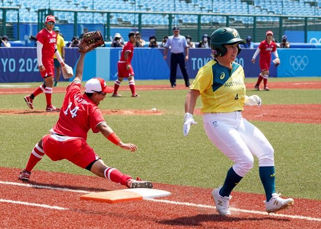 Host Japan is off to a winning start as the Tokyo Olympics get underway, beating Australia 8-1 Wednesday in softball behind 39-year-old pitcher Yukiko Ueno, who won the 2008 gold medal game against the United States.