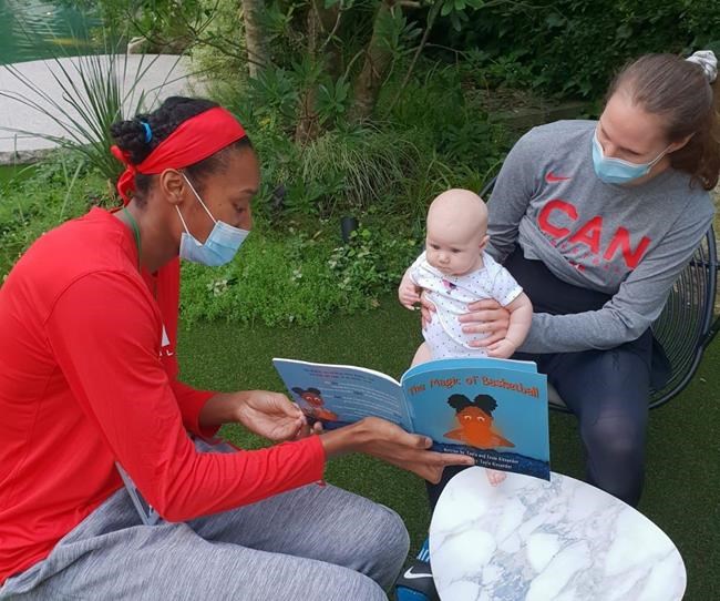 Canada Basketball posted adorable photos this week of veteran forward Kayla Alexander reading “The Magic of Basketball,” the children’s picture book she and her sister Kesia wrote, to Sophie during some downtime at their camp. Gaucher had Sophie balanced on one knee, the baby staring intently at the pages.
