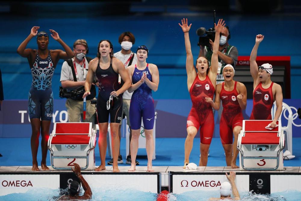 TOKYO—With Penny Oleksiak putting in a clutch performance in a rousing final leg, Canada’s women’s 4×100-metre freestyle swim team won a silver medal on Sunday.