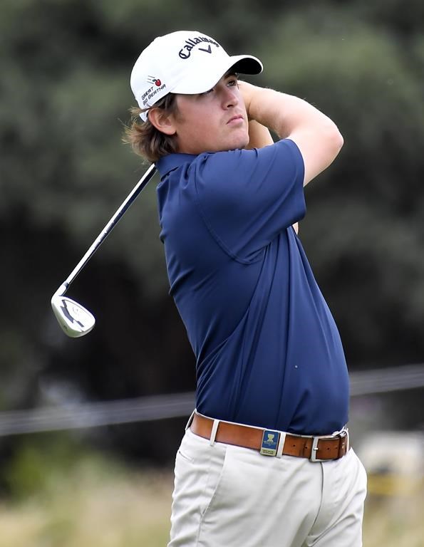 FILE - Netherlands Darius van Driel watches his approach shot into the 18th green during his match at the World Cup of Golf at Kingston Heath in Melbourne, Australia, Friday, Nov. 25, 2016. Dutch officials are not sending Van Driel to the Olympics because they feel his world ranking is too low to have a chance. (AP Photo/Andrew Brownbill, File)
