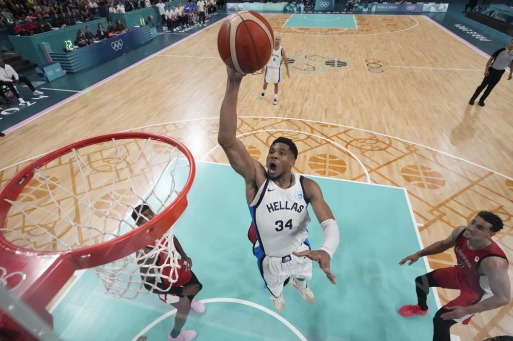 Antetokounmpo led all scorers with 34 points for Greece. Dillon Brooks scored 14 for Canada.