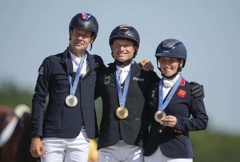 VERSAILLES, France (AP) — Michael Jung became the first rider to win the Olympic individual eventing title three times, clinching the fourth Olympic gold medal of his illustrious career on Monday.