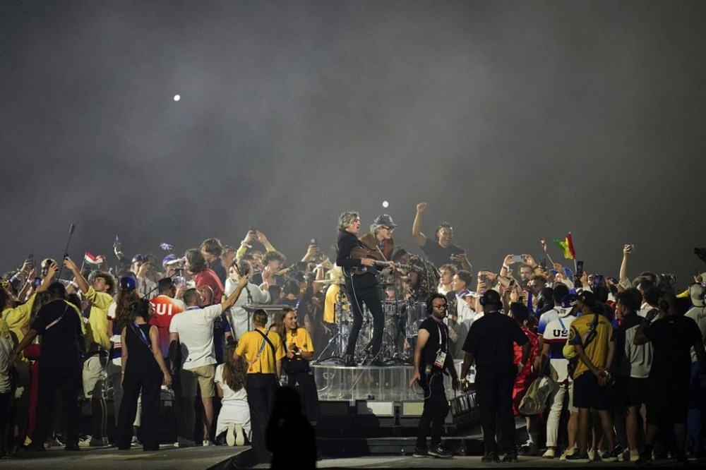 In their enthusiasm, crowds of athletes rushed the stage during a highlight video from the Games, and stadium announcements in French and English urged them to double back. Some of them stayed, surrounding Grammy-winning French pop-rock band Phoenix as they played, before security and volunteers cleared the stage.