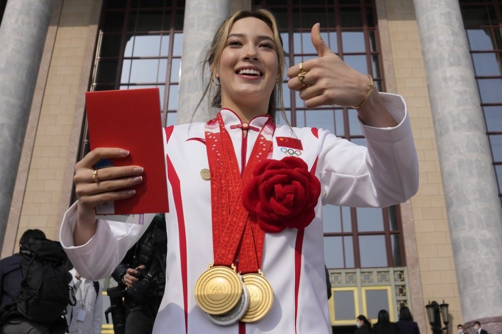 San Francisco-born Gu changed her allegiance to China to compete at the 2022 Beijing Olympic Games at which she won two gold medals in freestyle skiing at the age of 18. She will represent China again at the 2026 Winter Olympics in Milan and Cortina, Italy.