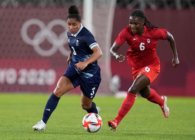 Canada's Deanne Rose, right, and Britain's Demi Stokes battle for the ball during a women's soccer match at the Tokyo Summer Olympic Games, in Kashima, Japan, Tuesday, July 27, 2021. Rose has signed with England's Reading FC. THE CANADIAN PRESS/AP-Fernando Vergara
