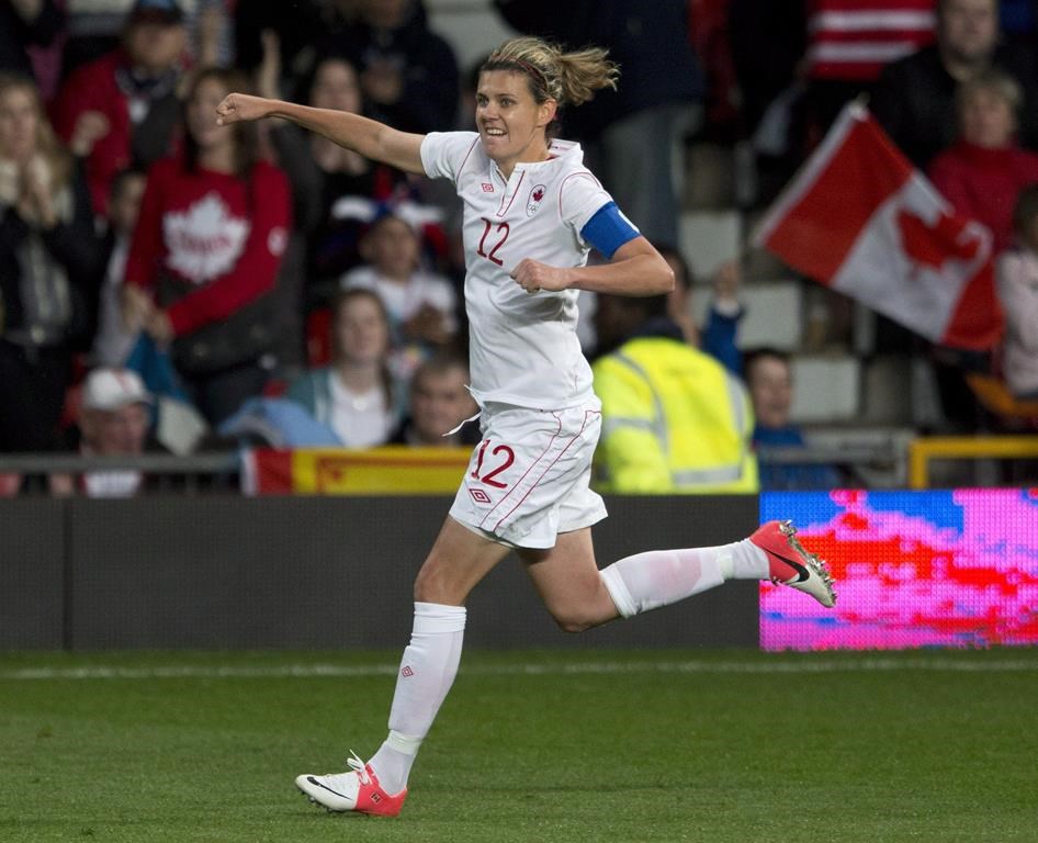Christine Sinclair's resume features 190 goals and plenty of highlights, but perhaps none more memorable than the 2012 Olympic semifinal against the U.S. Sinclair (12) celebrates her third goal of the game against USA during second half women's soccer action at the Olympic Games in London, Monday, Aug. 6, 2012. THE CANADIAN PRESS/Frank Gunn