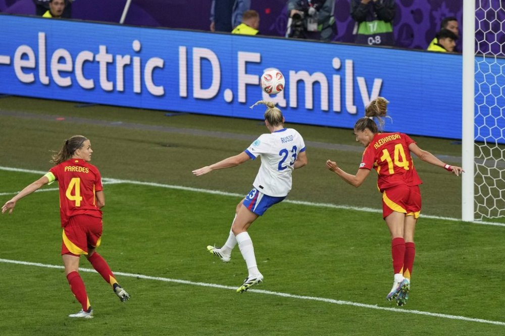 Chloe Kelly whipped one of her trademark crosses into the box from the left and Russo rose above the defense to make it 1-1.