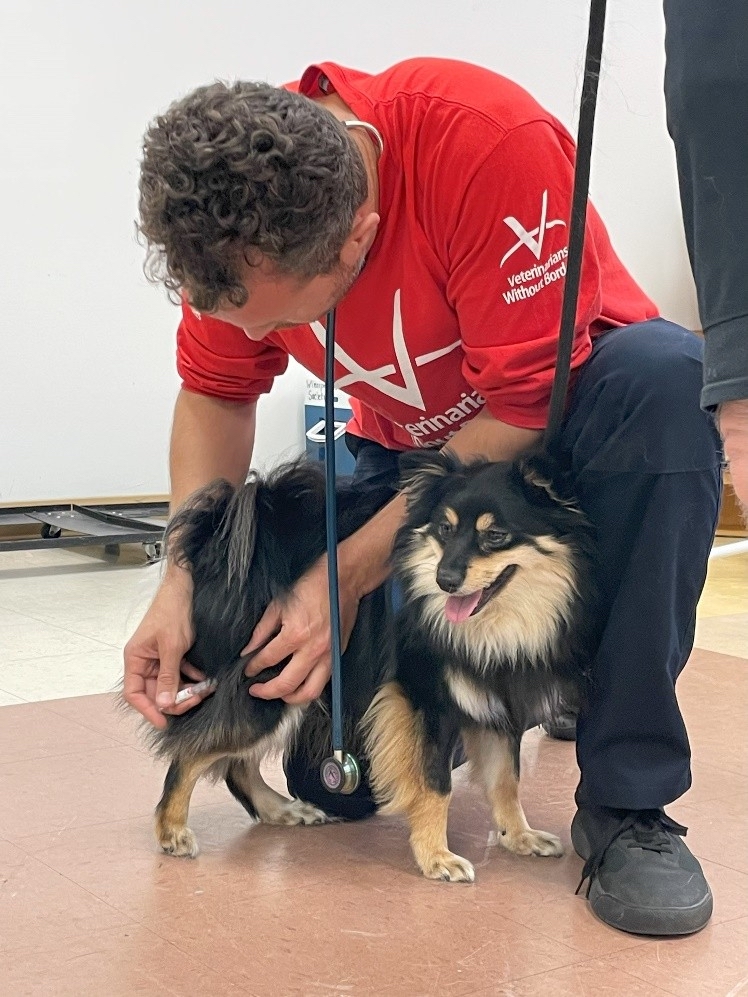 A Veterinarians Without Borders North America volunteer vaccinates a dog at a previous free clinic.