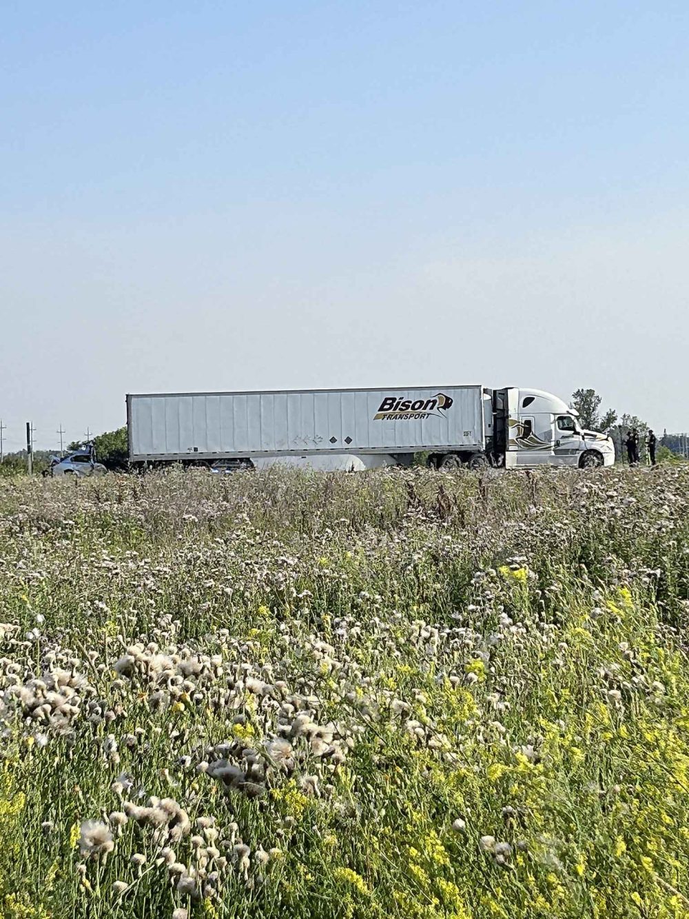 By 6:30 p.m., at least a half-dozen Winnipeg Police Service members, including traffic investigators, were working to assess the scene. Meanwhile, police cadets diverted westbound traffic at the intersection of the Sturgeon Access road and CentrePort Way.
