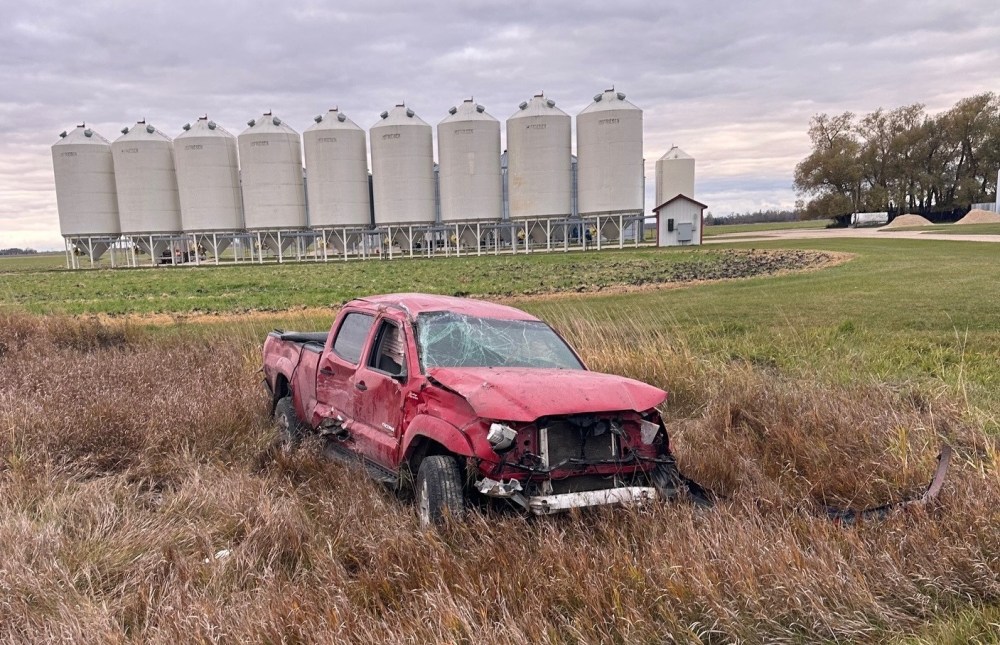 The Tacoma and more police vehicles “made contact” as Mounties tried to stop the stolen truck. It overturned into a ditch along Provincial Road 430, about 500 metres north of the Trans-Canada.
