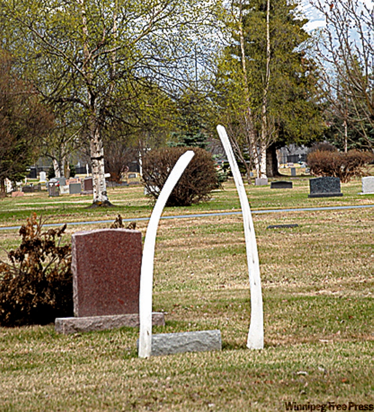 Whalebones and aircraft propellers form the headstones at a number of gravesites.