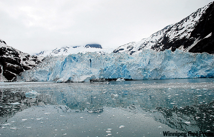 There is no escape from the mountains that seem to surround us as we sail along Prince William Sound. Hints of what is to come are signalled by the thousands of ice floes on top of the water. They wait for warmer weather to convert them into a flatter, more permanent, shimmering waterscape, even as new jagged formations break off the glaciers with a thunderous roar and splash.