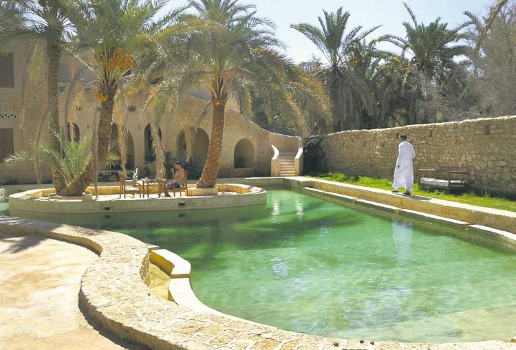 A friend and I stayed at the Ghaliet Ecolodge and Spa, which is built around a date palm grove with buildings made of traditional mud and salt bricks known as kersheef. Owner Magdy Riad swears no trees were displaced, pointing to branches sprouting from the roofs.