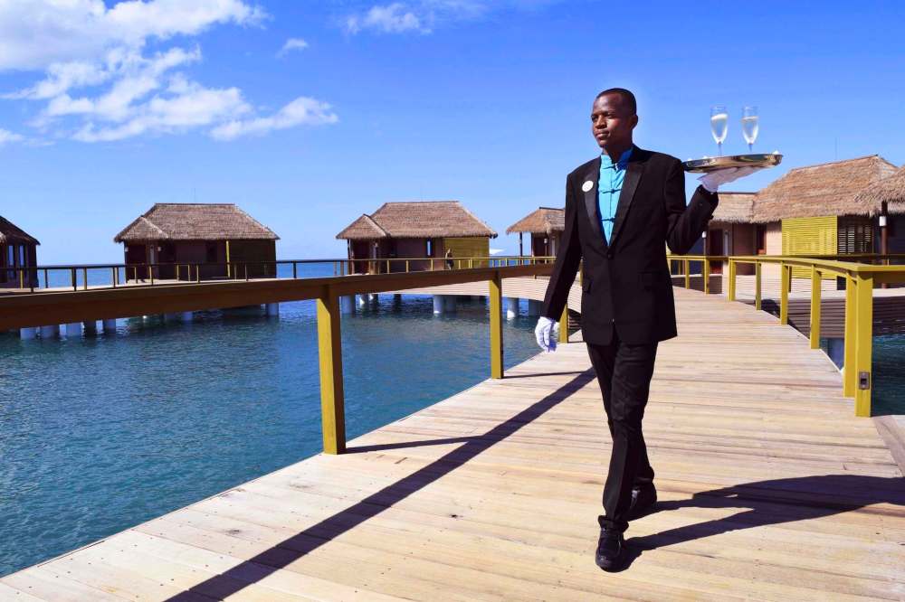 When we do decide to emerge from our over-water exile, the resort has an exclusive, private cabana on the adjacent beach just for us, five pool complexes, six à-la-carte restaurants, wide swathes of white sand and included activities from the aforementioned water-skiing, scuba and snorkelling to sailing, beach volleyball and carnival and reggae nights.