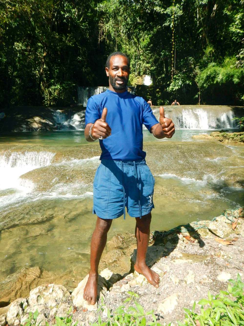 The only time we venture off the resort is to climb the spectacular nearby six-tiered YS waterfall with lifeguard-guide Norman Roberts.