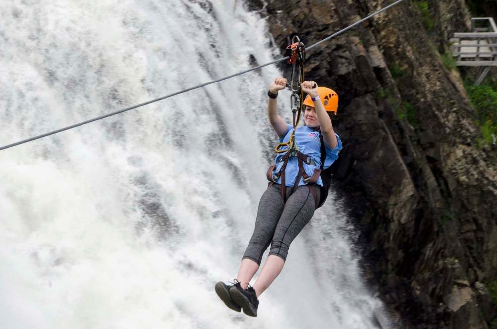 Cal Woodward / the associated press files Lily Henry-Austin soars across the expanse in front of Montmorency Falls on the outskirts of Quebec City.