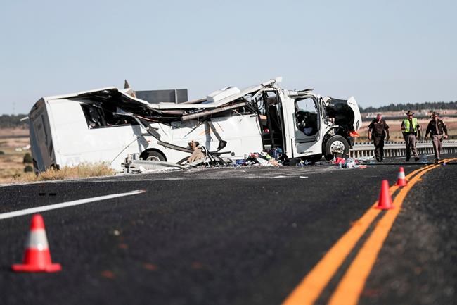 Utah Highway Patrol officials previously said it appeared the driver swerved and overcorrected, sending the bus rolling over into a guardrail near a highway rest stop a few miles from the national park. The crash left the top of a white bus smashed in and one side peeling away as the vehicle came to rest mostly off the side of the road against a sign for restrooms.