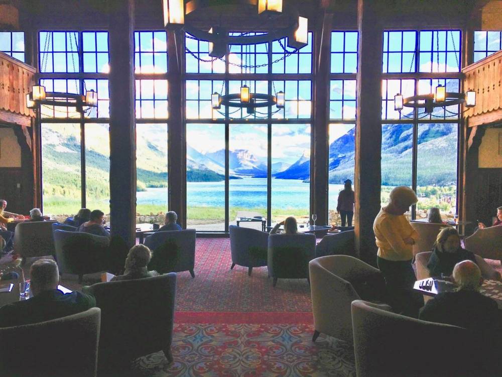 An affable Australian staffer lectured guests about this iconic hotel. Open from mid-May to mid-September and operated by Pursuit Hotels, it was built in 1927 by St. Paul-based Great Northern Railway so thirsty Americans could end-run Prohibition. It was a whiskey investment.