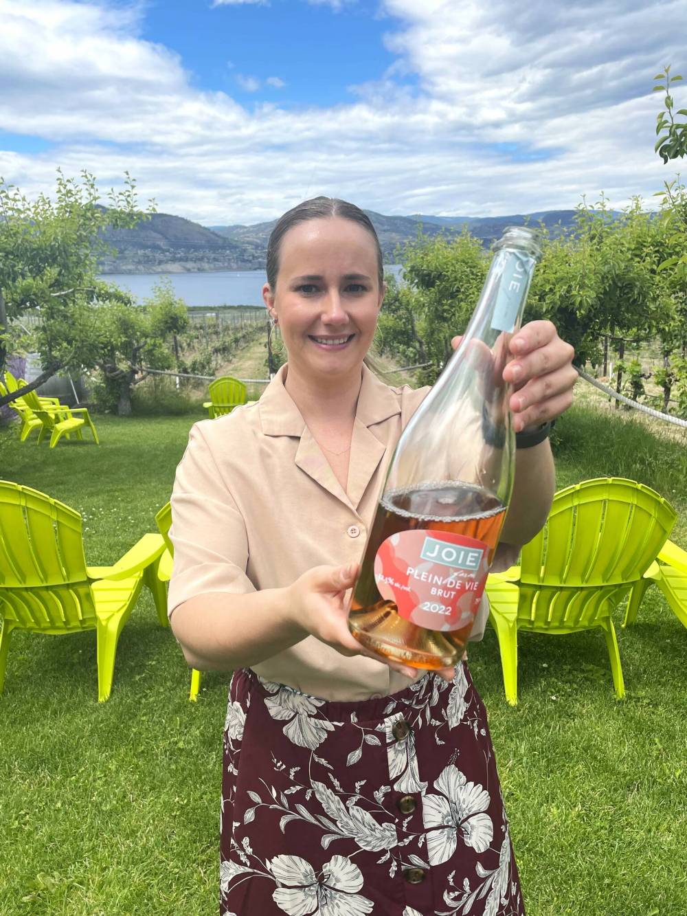 Erin brings out the Plein De Vie sparkling at Joie Farm Winery.