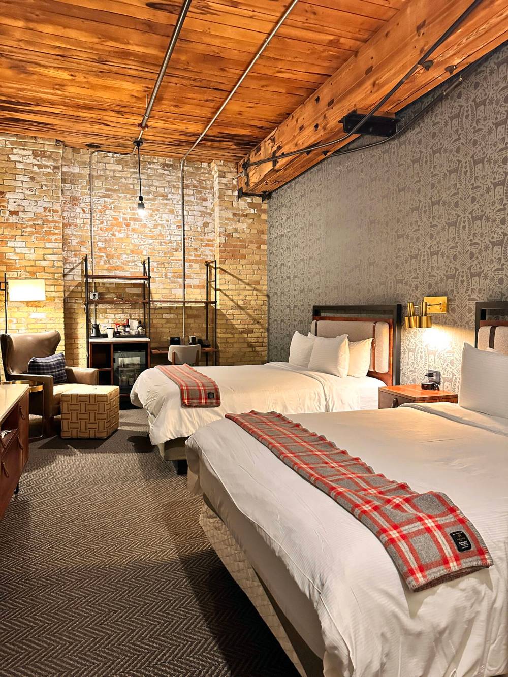 It’s a bit laughable to think that a century ago, this floor space was used as a showroom for plows, seed planters and tractors — definitely not hip. The hotel’s name is inspired by the Minnesota-pine beams that were hewn in the neighbourhood, and evidence of that craftsmanship is everywhere in this hotel.
