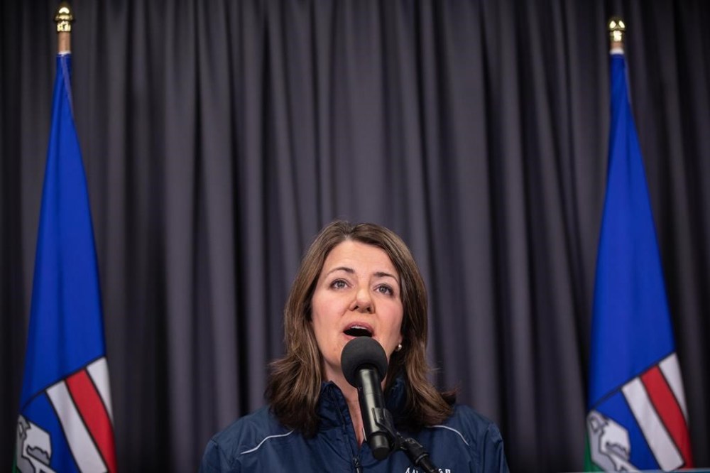 Alberta Premier Danielle Smith gives an update in Alberta on Monday, May 8, 2023. THE CANADIAN PRESS/Jason Franson