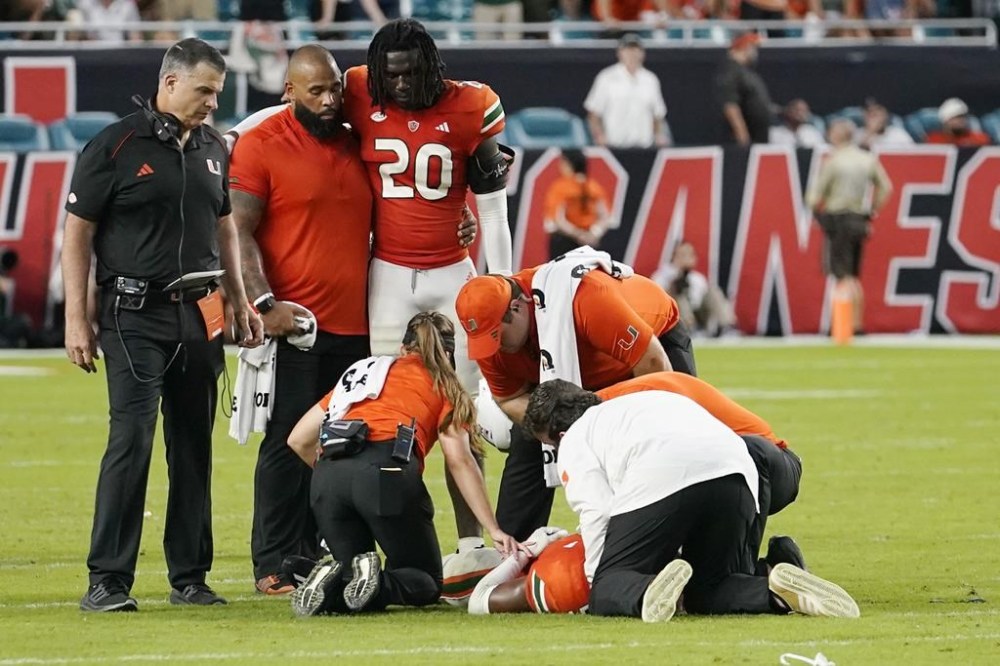 Miami coach says injured safety Kamren Kinchens is ‘in good shape’ after scary hit