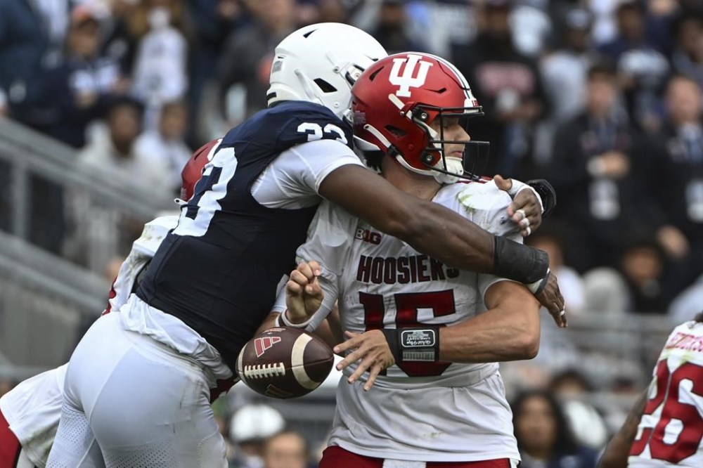 Indiana: QB Brendan Sorsby. The second-year quarterback finally brought a glimmer of hope to the Hoosiers offense by throwing TD passes of 90, 60 and 26 yards against No. 10 Penn State. He’s the first Indiana player with multiple TD passes over 60 yards in a game since 1996. Now everyone wants to see if he can do it again.