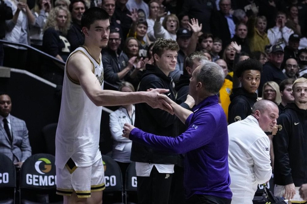 But as he departed, Collins congratulated Purdue coach Matt Painter and reigning national player of the year Zach Edey before gesturing to the booing fans to get louder.