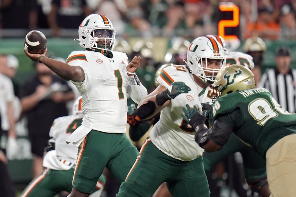 “Proud of our guys for responding like they did. It’s the first time we’ve actually trailed this year,” Miami coach Mario Cristobal said. “In the second half we played cleaner and better Miami Hurricane football.”