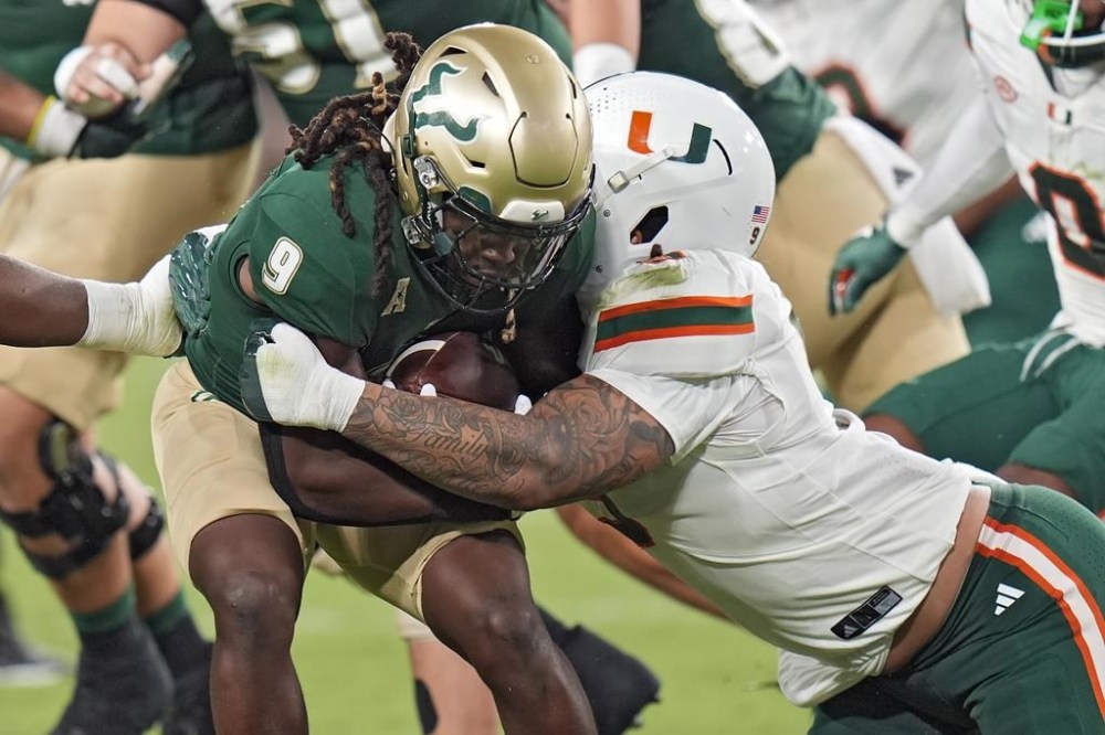 USF, rebuilding under second-year coach Alex Golesh, gave a Top 10 opponent problems for the second time in its last three games. The Bulls got Miami’s attention when they played No. 4 Alabama close before a fourth-quarter collapse left them with a 42-16 loss.