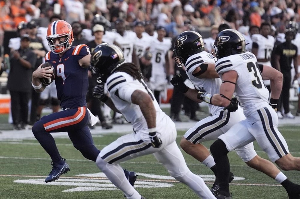 No. 23 Illinois outlasts Purdue 50-49 in overtime on sack on 2-point conversion