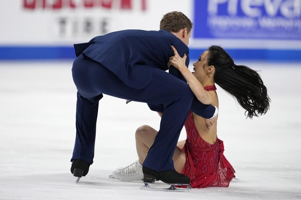 The ice dance competition also began with the rhythm dance, and a mistake by two-time defending world champions Madison Chock and Evan Bates left the Americans trailing Britain’s Lilah Fear and Lewis Gibson heading into Sunday.