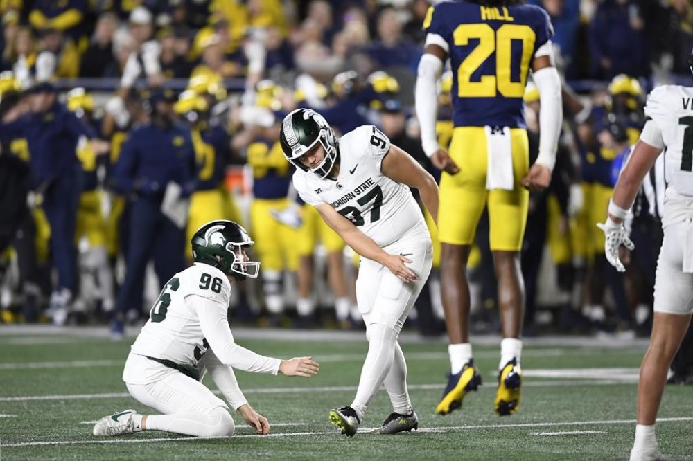 The Spartans reached the Michigan 2 on the opening possession and planned to go for it on fourth down but was called for delay of game and botched a field-goal attempt.