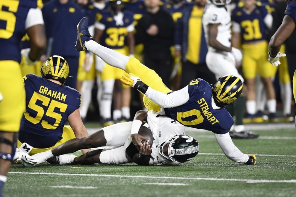 ANN ARBOR, Mich. (AP) — Michigan tight end Colston Loveland and Michigan State defensive end Anthony Jones pushed, shoved and butted helmets, triggering a skirmish with the rivals throwing punches as the final seconds ticked off the clock Saturday night.