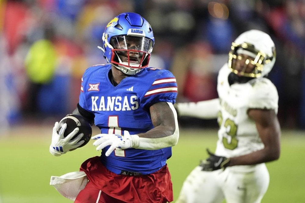 The senior running back ran for 207 yards and three touchdowns on a career-high 37 carries and caught four passes for 80 yards and a TD in the Jayhawks’ 37-21 win over Colorado.