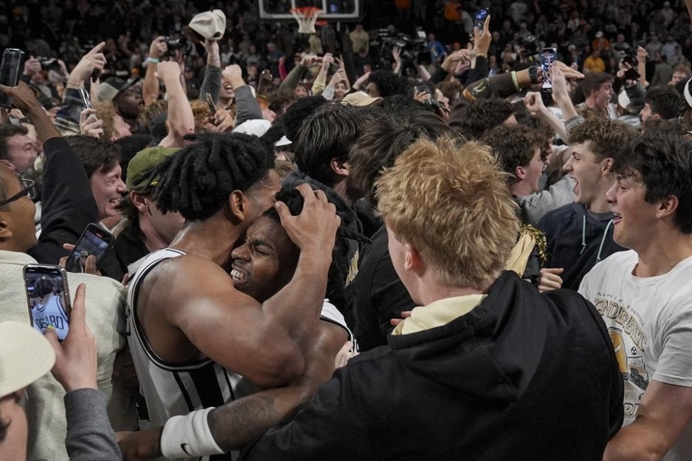 Fans stormed the court for the first sellout at Memorial Gym since 2019 after the Commodores (15-3, 3-2 Southeastern Conference) won for only the second time in the last 14 games of this series.