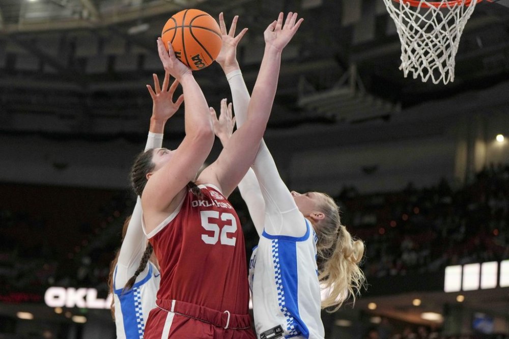 GREENVILLE, S.C. (AP) — Oklahoma’s starting center was serenaded with chants of “Beers! Beers! Beers!” from the school’s pep band on Friday as she left the floor following the 10th-ranked Sooners’ 69-65 win over No. 12 Kentucky in the Southeastern Conference Tournament quarterfinals.