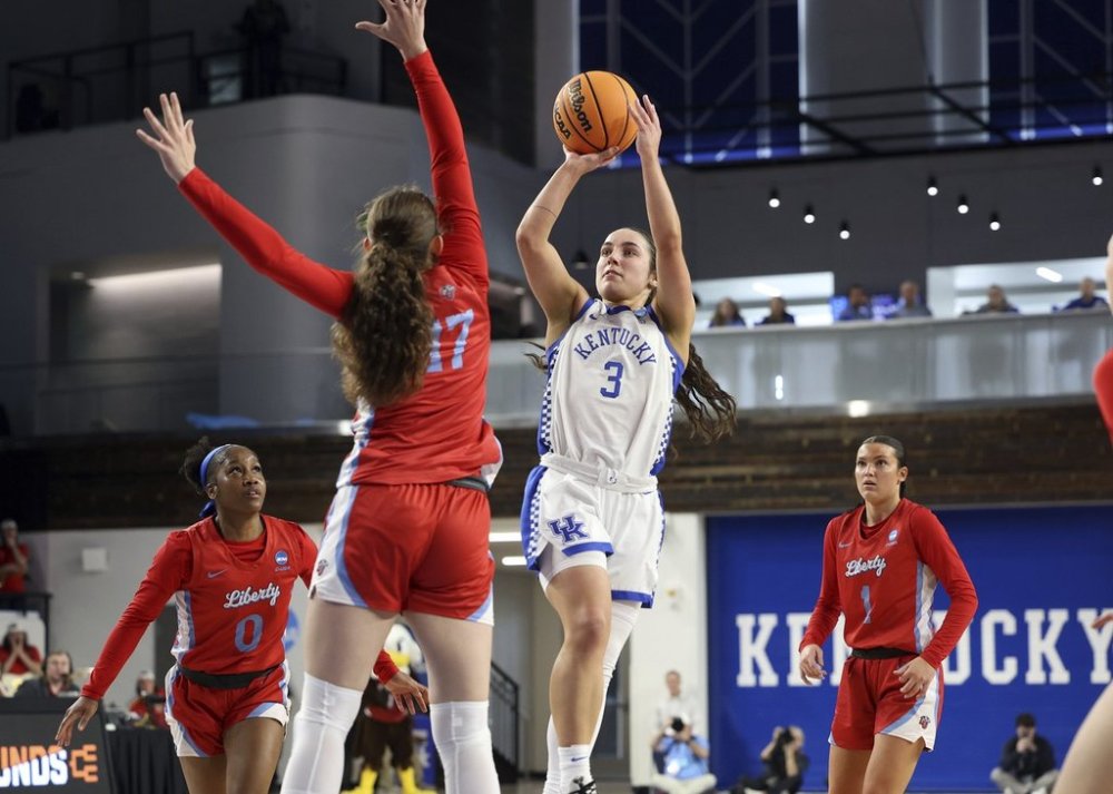 Liberty’s Emma Hess drained a 3-pointer for the final points of the game, but Amoore avoided getting fouled in the final 2 seconds to preserve Kentucky’s first tournament win in four years.