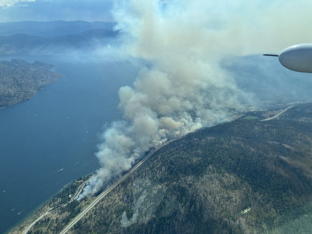 Crews were using Okanagan Lake to pick up water to douse the flames, and the service has asked people on the lake to give the aircraft room.